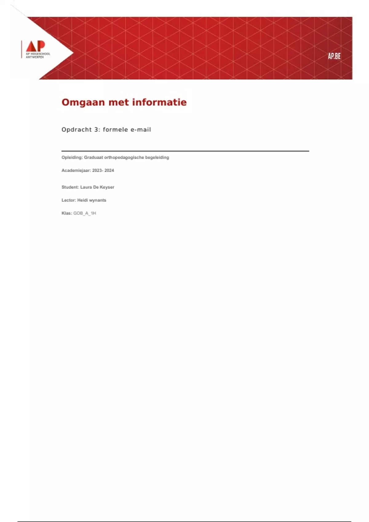 Opdracht 3: formele e-mail