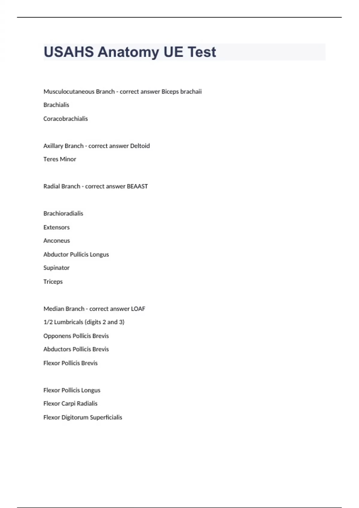 USAHS Anatomy UE Test fully solved graded A+