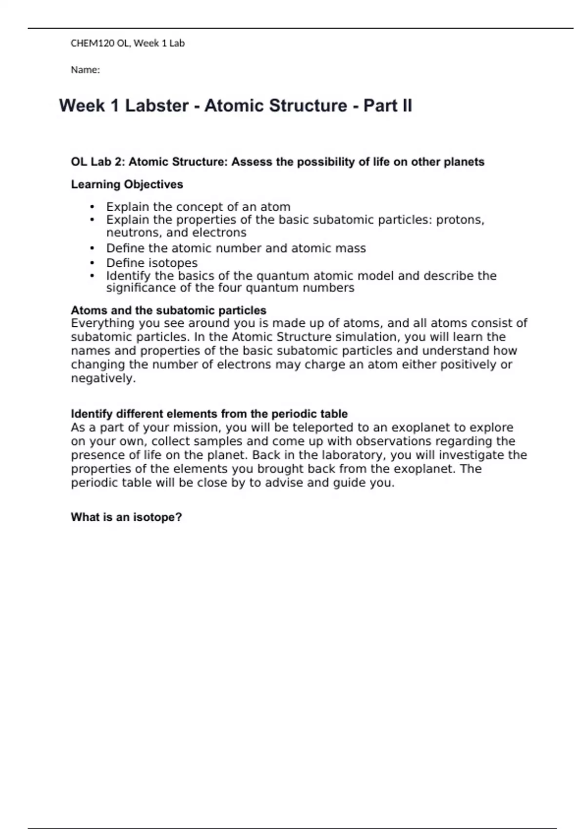 CHEM 120Week 1 Labster - Atomic Structure - Part II