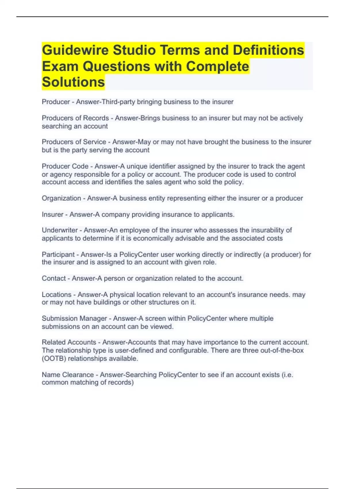 Guidewire Studio Terms and Definitions Exam Questions with Complete