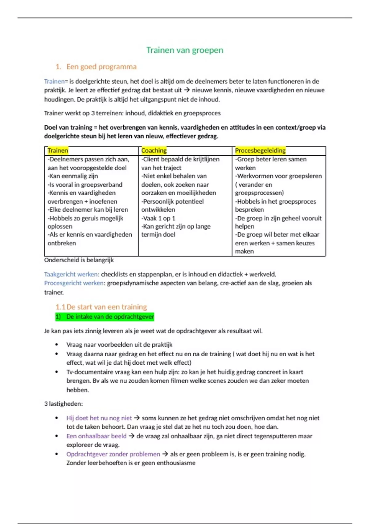 Trainen= is doelgerichte steun, het doel is altijd om de deelnemers beter te laten functioneren in de
