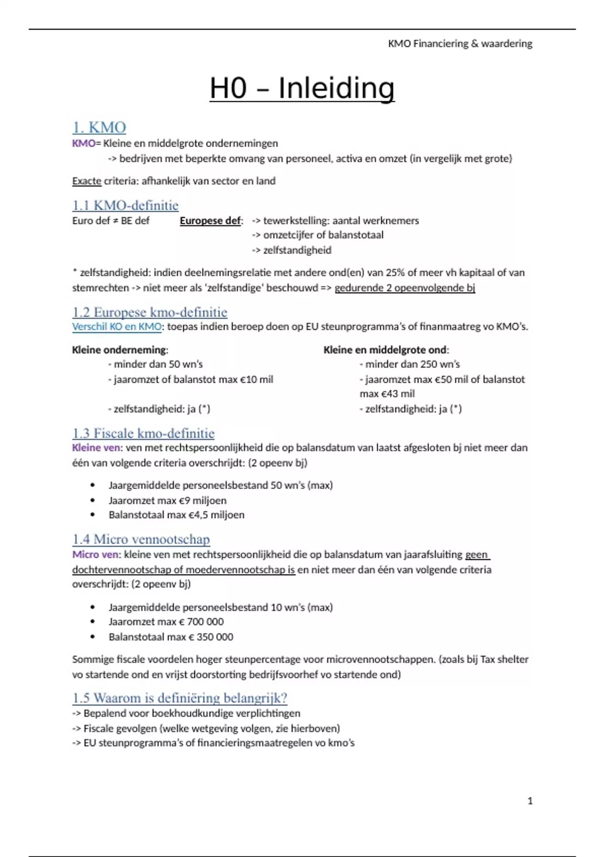 Verschil KO en KMO: toepas indien beroep doen op EU steunprogramma’s of finanmaatreg vo KMO’s.