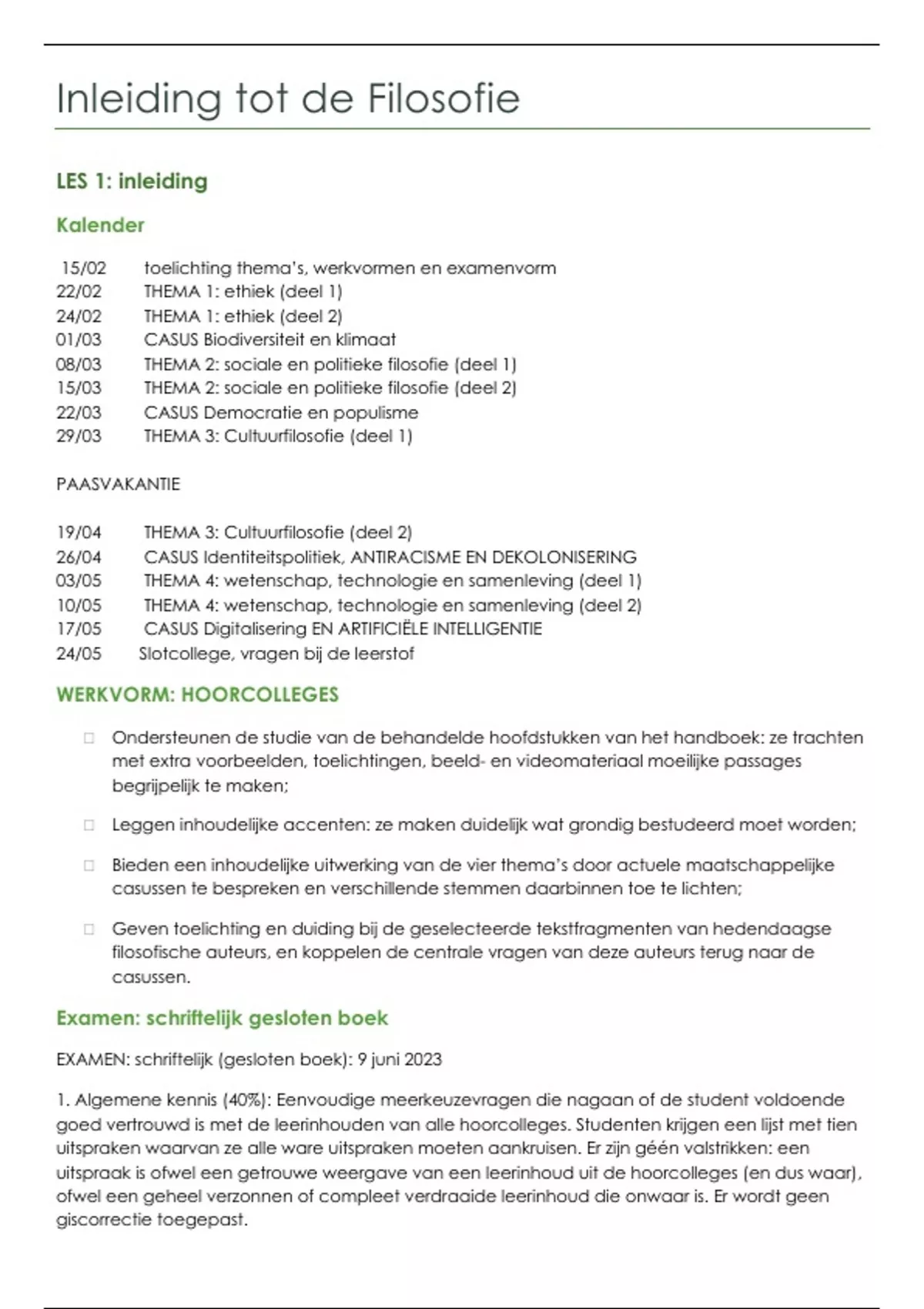 goed vertrouwd is met de leerinhouden van alle hoorcolleges. Studenten krijgen een lijst met tien