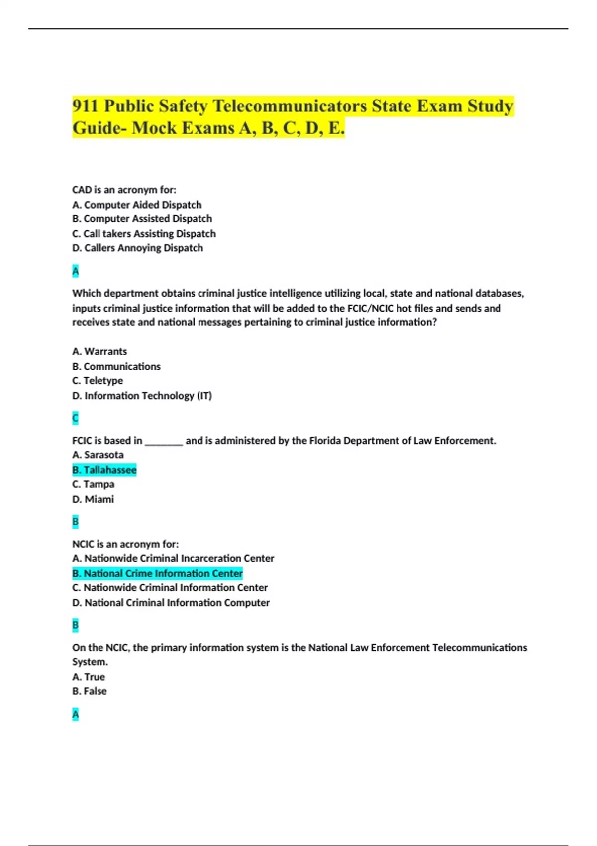 Guide- Mock Exams A, B, C, D, E.