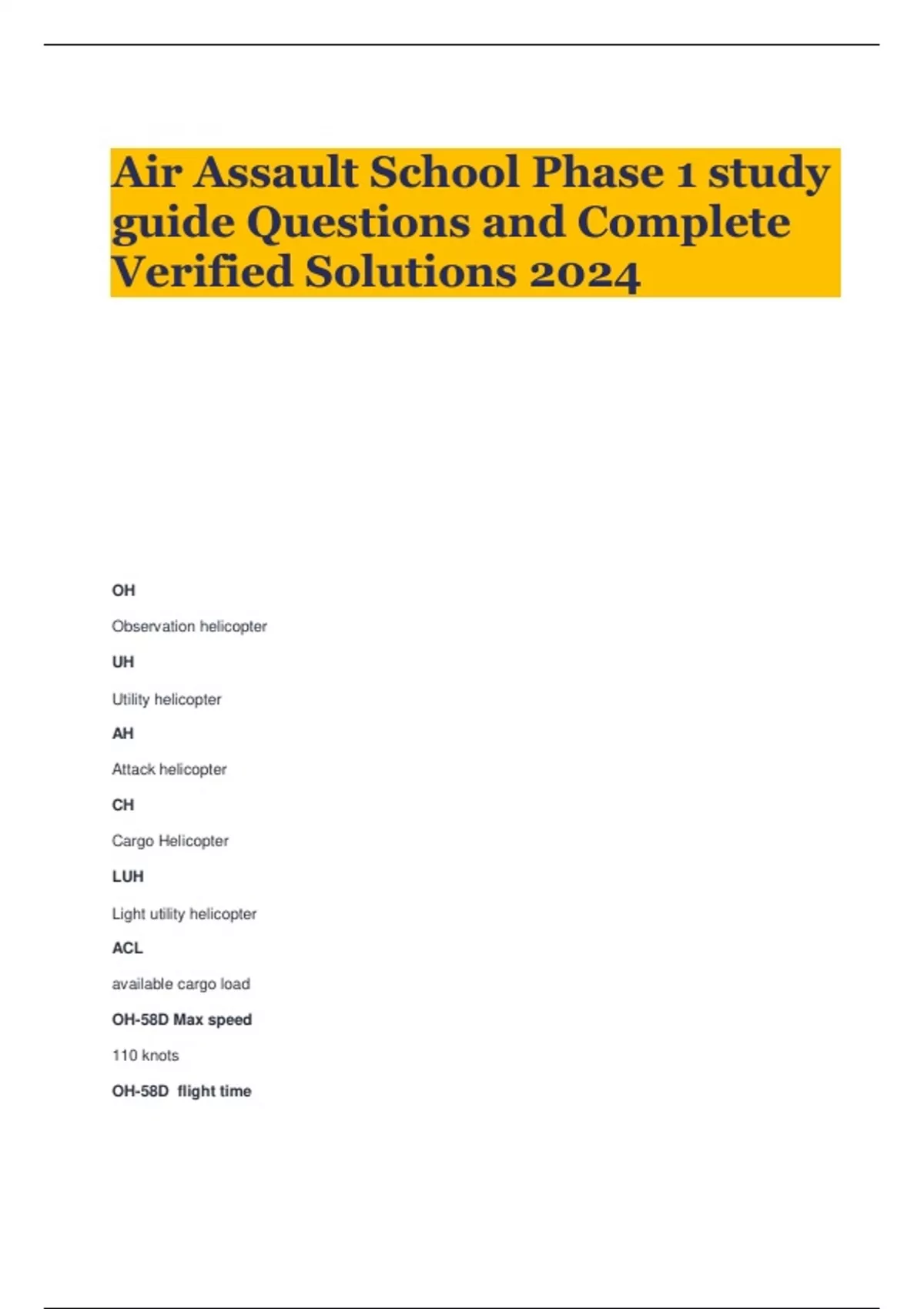 Air Assault School Phase 1 study guide Questions and Complete Verified Solutions 2024