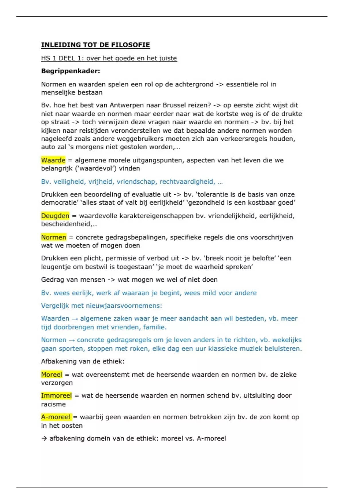 samenvatting filosofie (alle ppt's samengevat + notities uit les en lesteksten + alle casussen!) Academiejaar , Prof Marlies de Munck Score behaald: 14/20