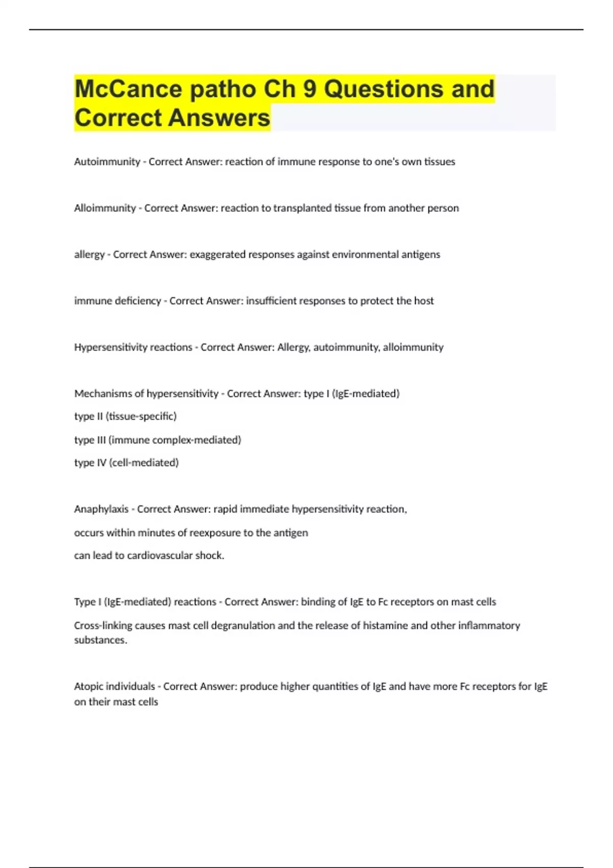 McCance patho Ch 9 Questions and Correct Answers.