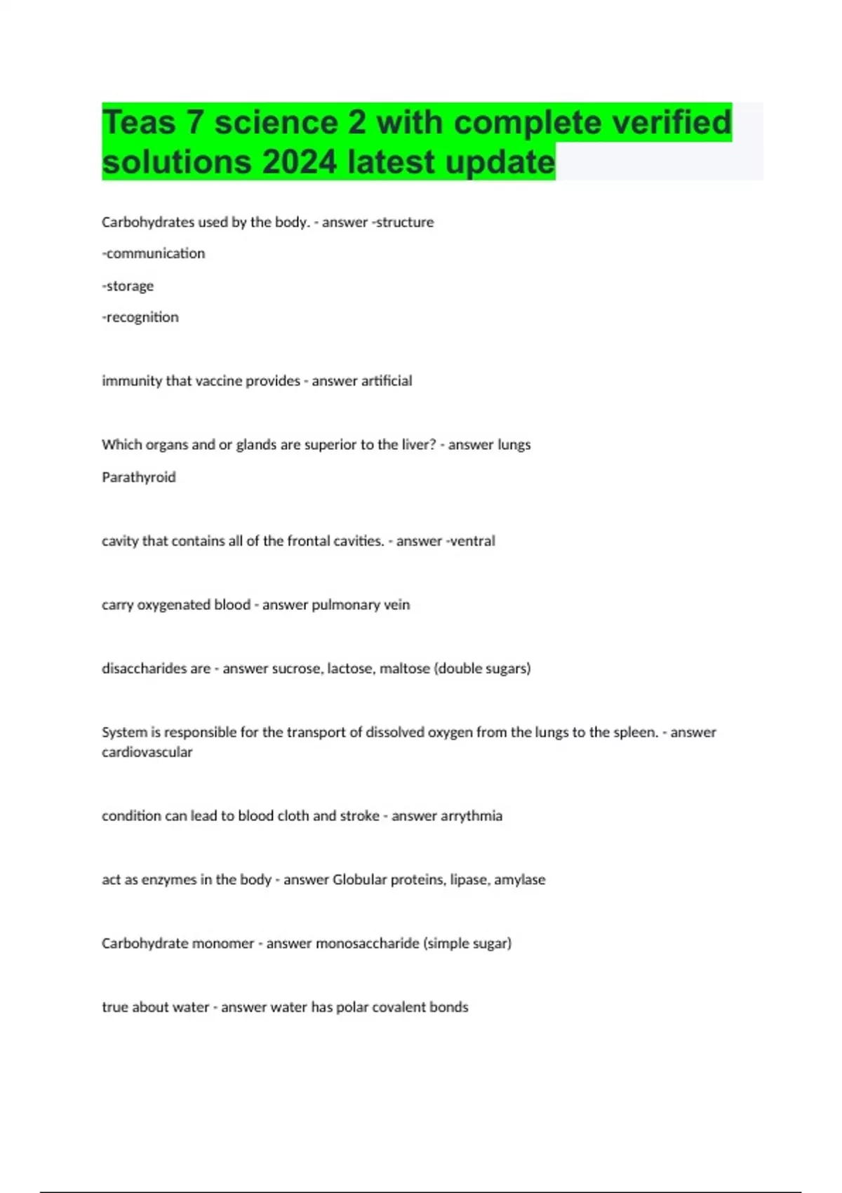 Teas 7 science 2 with complete verified solutions 2024 latest update