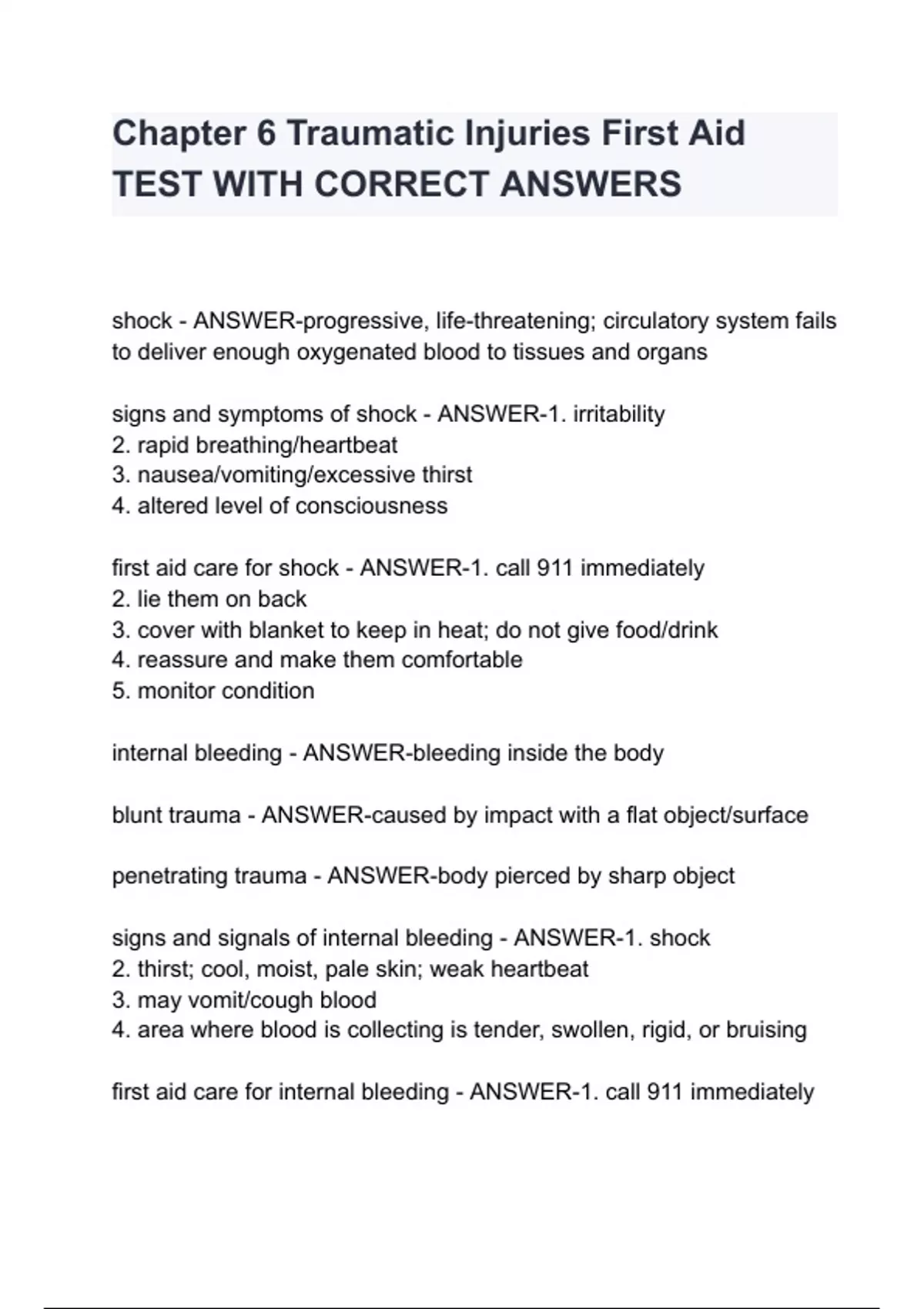 Chapter 6 Traumatic Injuries First Aid TEST WITH CORRECT ANSWERS