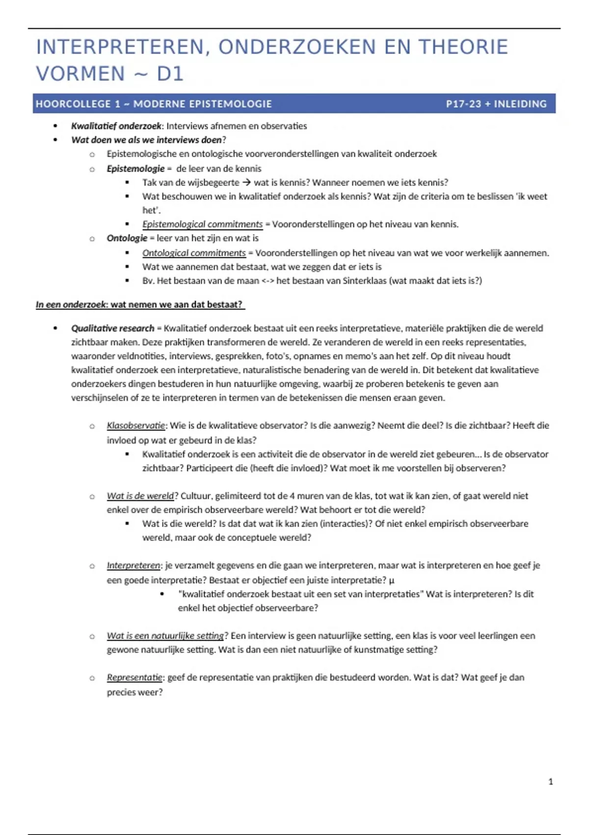HOORCOLLEGE 1 ~ MODERNE EPISTEMOLOGIE P17-23 + INLEIDING