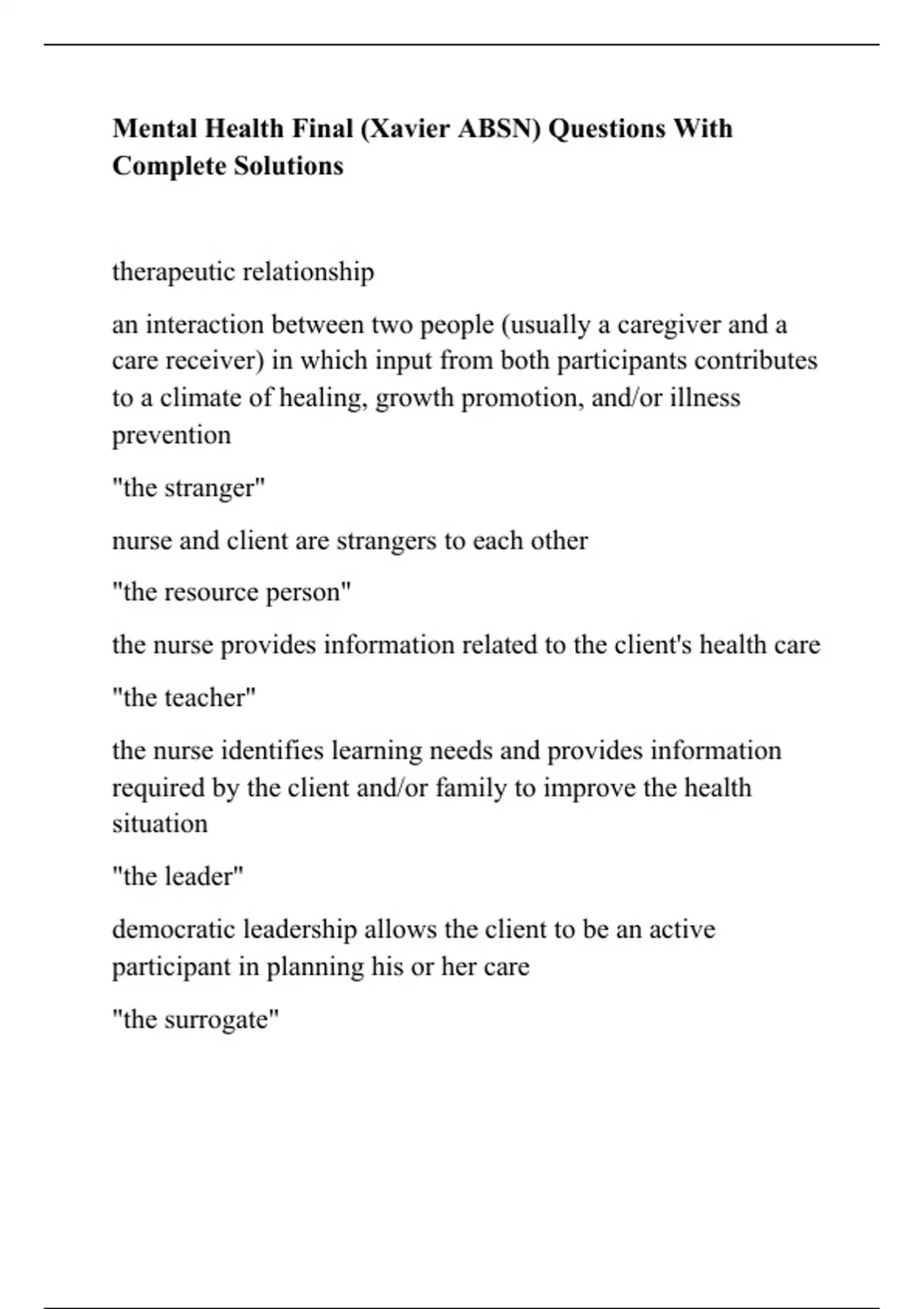 Mental Health Final (Xavier ABSN) Questions With Complete Solutions