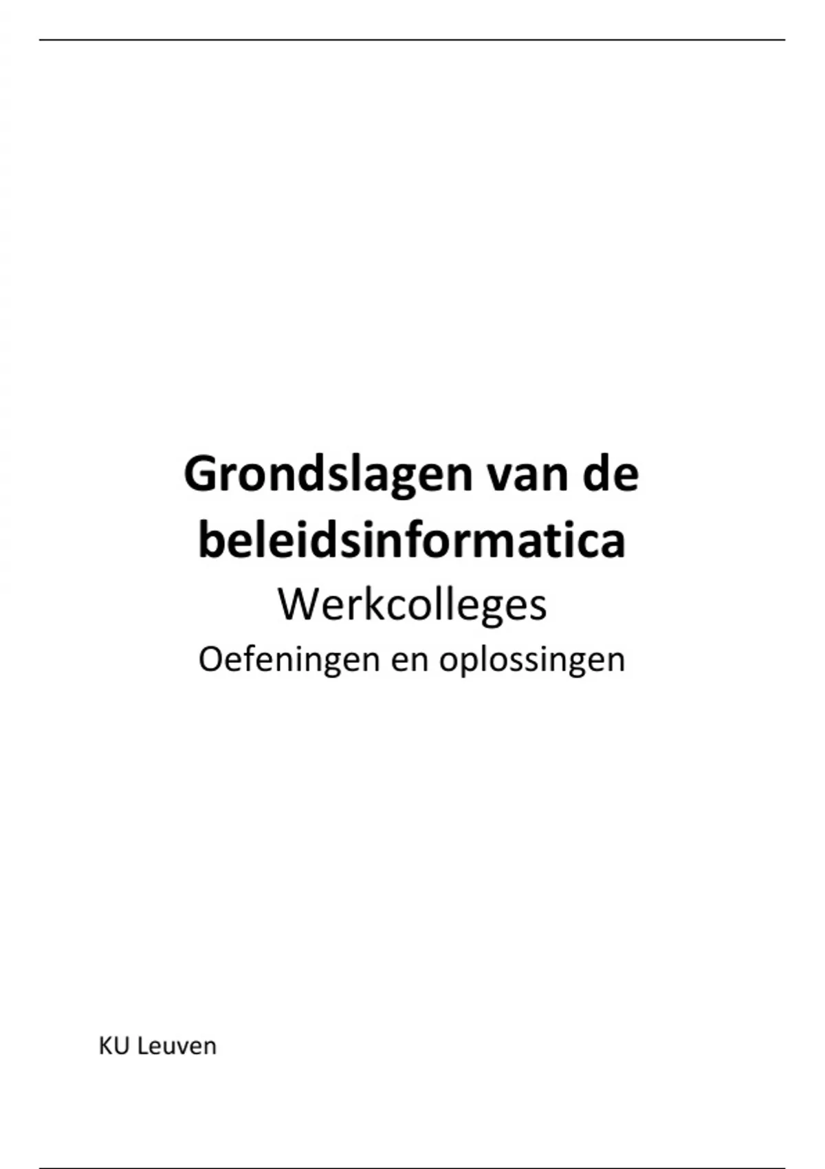 Grondslagen van de beleidsinformatica - Werkcolleges: oefeningen en oplossingen