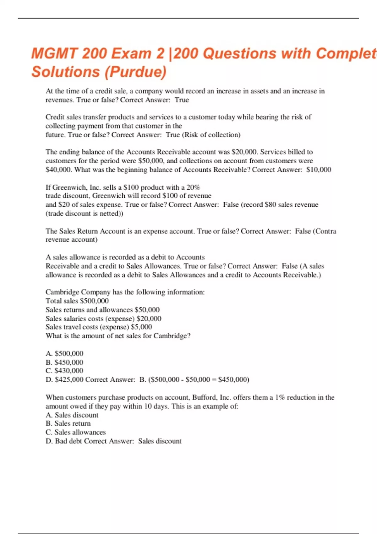 MGMT 200 Exam 2 | 200 questions| with complete solution (Purdue University
