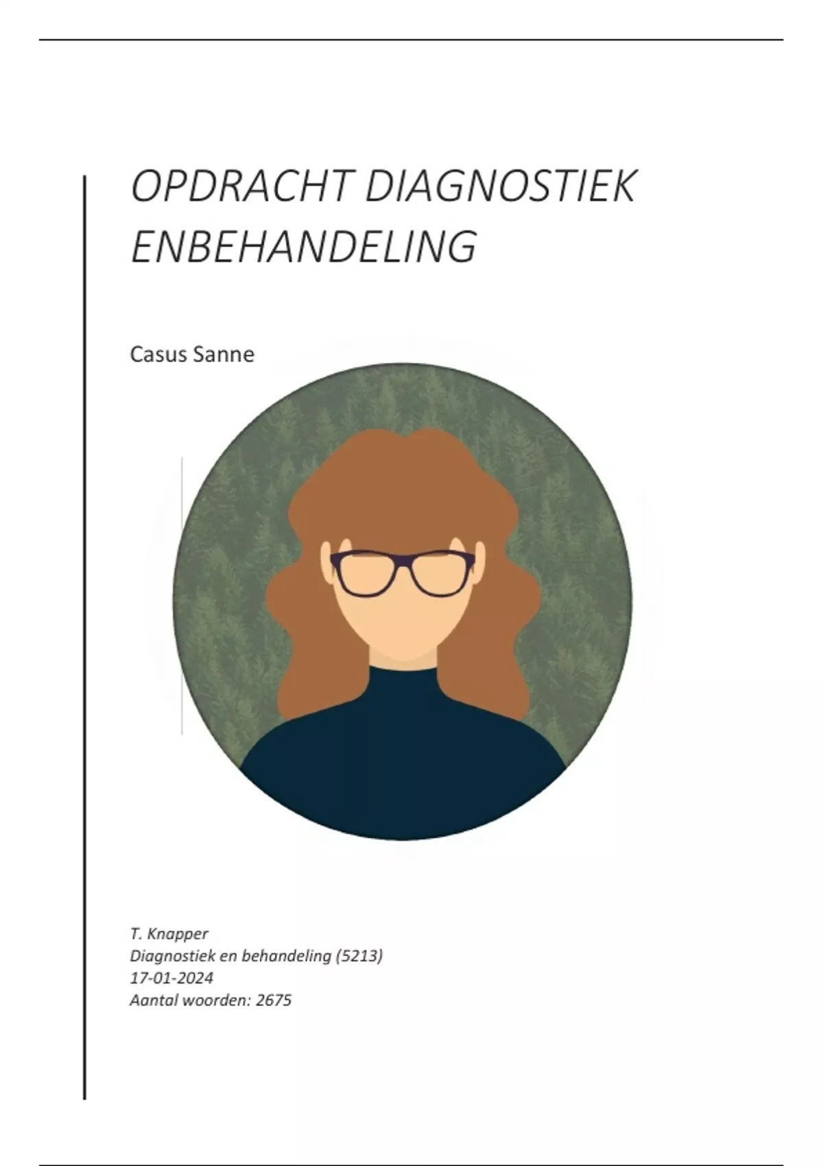 Eindopdracht Diagnostiek en Behandeling SPO | afgerond met 8,3 | Casus Sanne