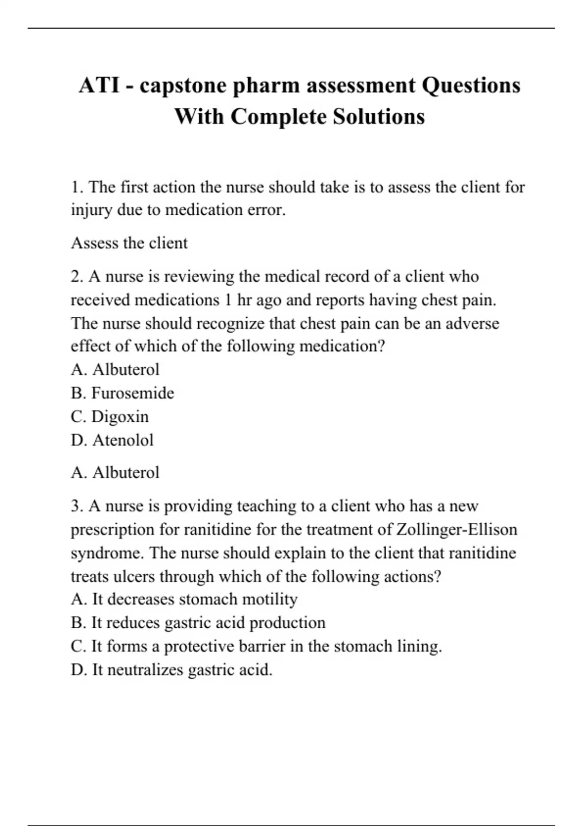 ATI - capstone pharm assessment Questions With Complete Solutions