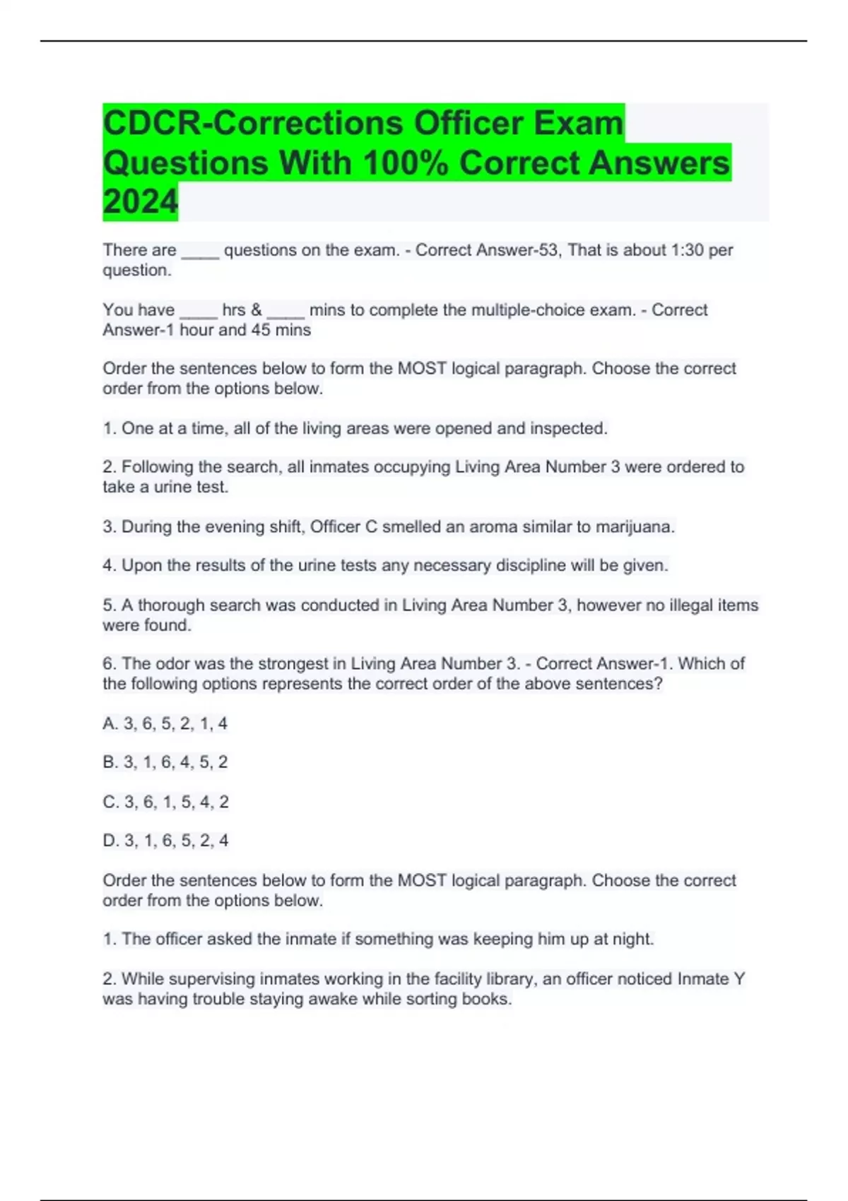 CDCR-Corrections Officer Exam Questions With 100% Correct Answers 2024