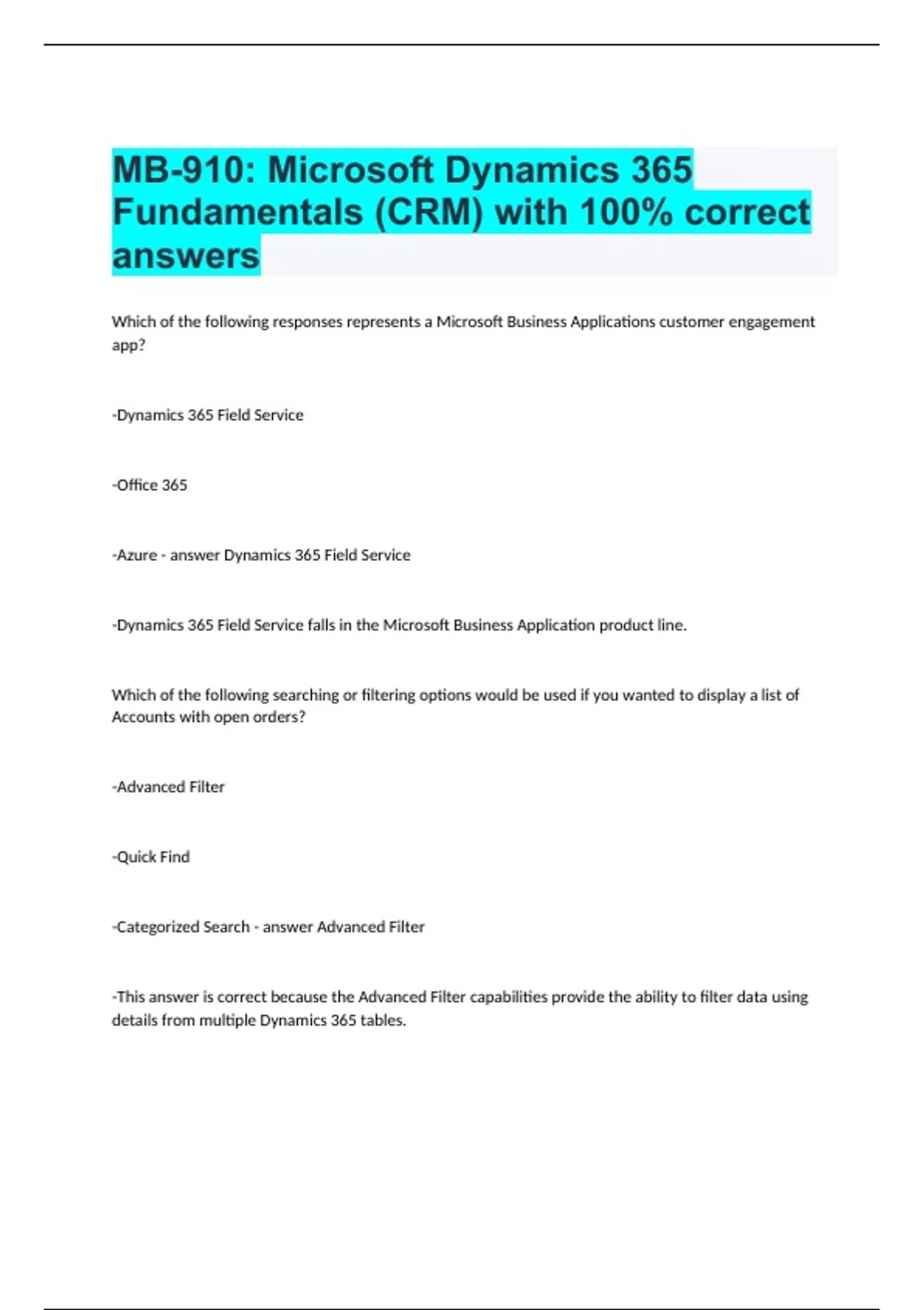 MB-910: Microsoft Dynamics 365 Fundamentals (CRM) with 100% correct answers