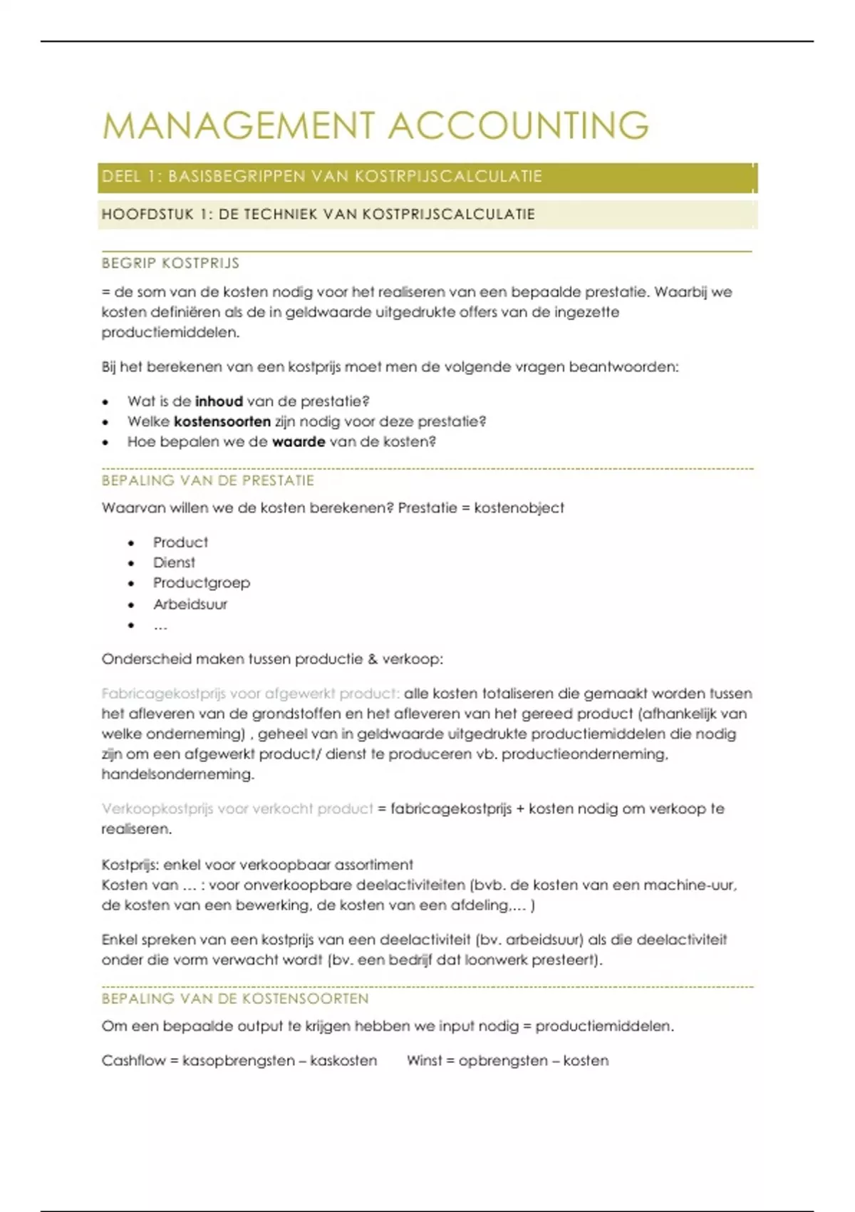 DEEL 1: BASISBEGRIPPEN VAN KOSTRPIJSCALCULATIE