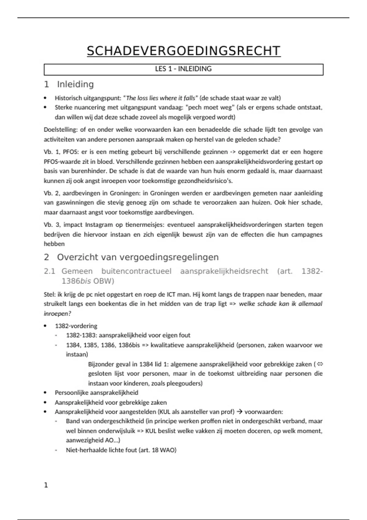 2.1 Gemeen buitencontractueel aansprakelijkheidsrecht (art. 1382-