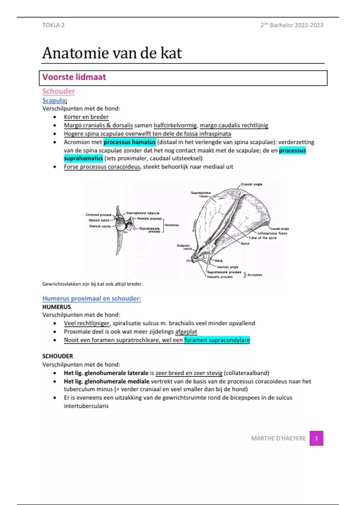 • Acromion met processus hamatus (distaal in het verlengde van spina scapulae): verderzetting