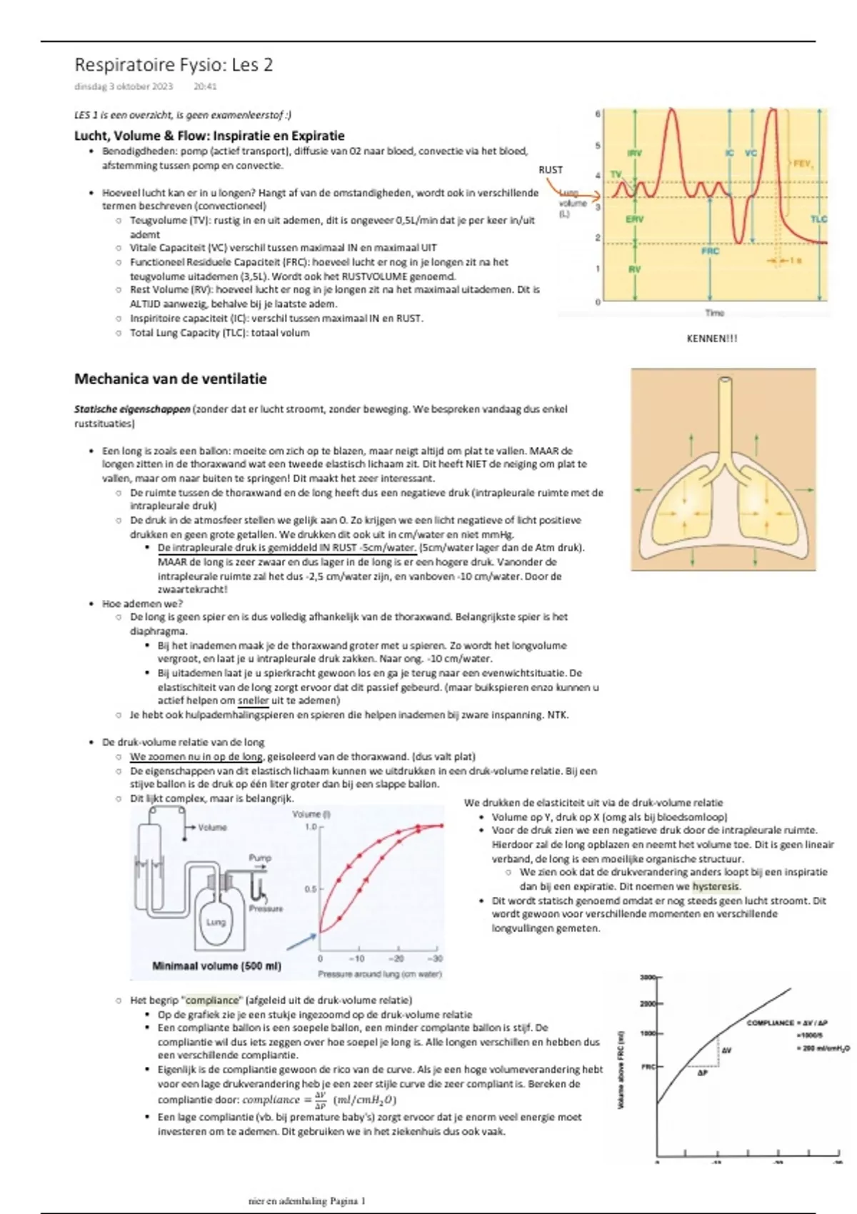 , ○ Het begrip "compliance" (afgeleid uit de druk-volume relatie)