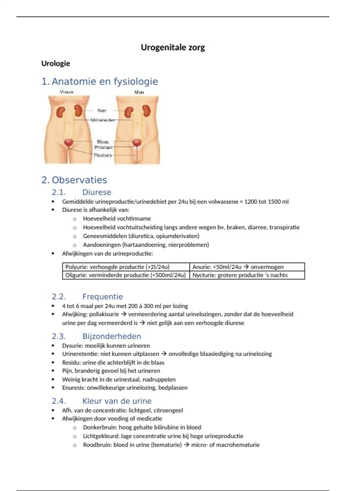 Oligurie: verminderde productie (<500ml/24u) Nycturie: grotere productie ‘s nachts