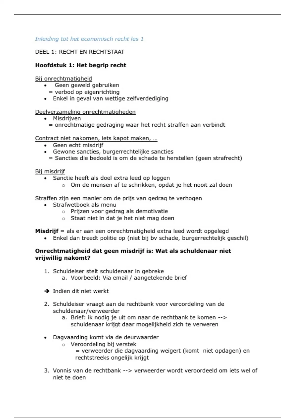 Samenvatting inleiding tot het economisch recht TEW&HIR (19/20 eerste zit)