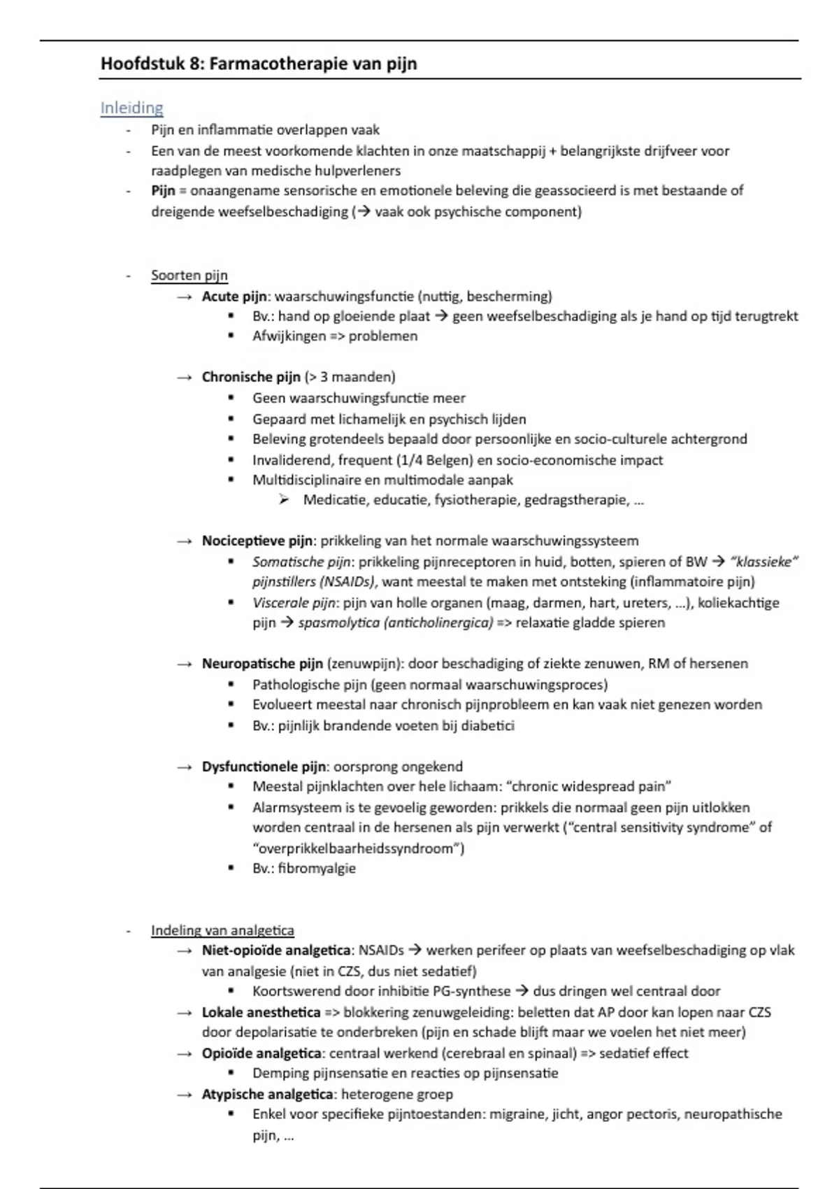 Hoofdstuk 8: Farmacotherapie van pijn