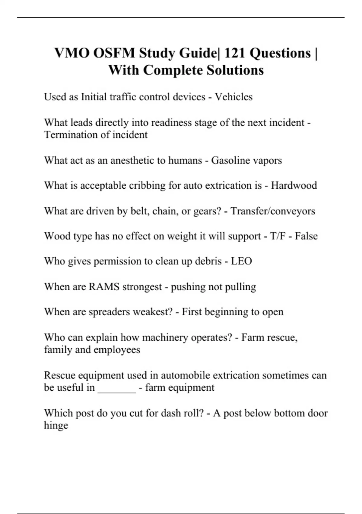 VMO OSFM Study Guide| 121 Questions | With Complete Solutions