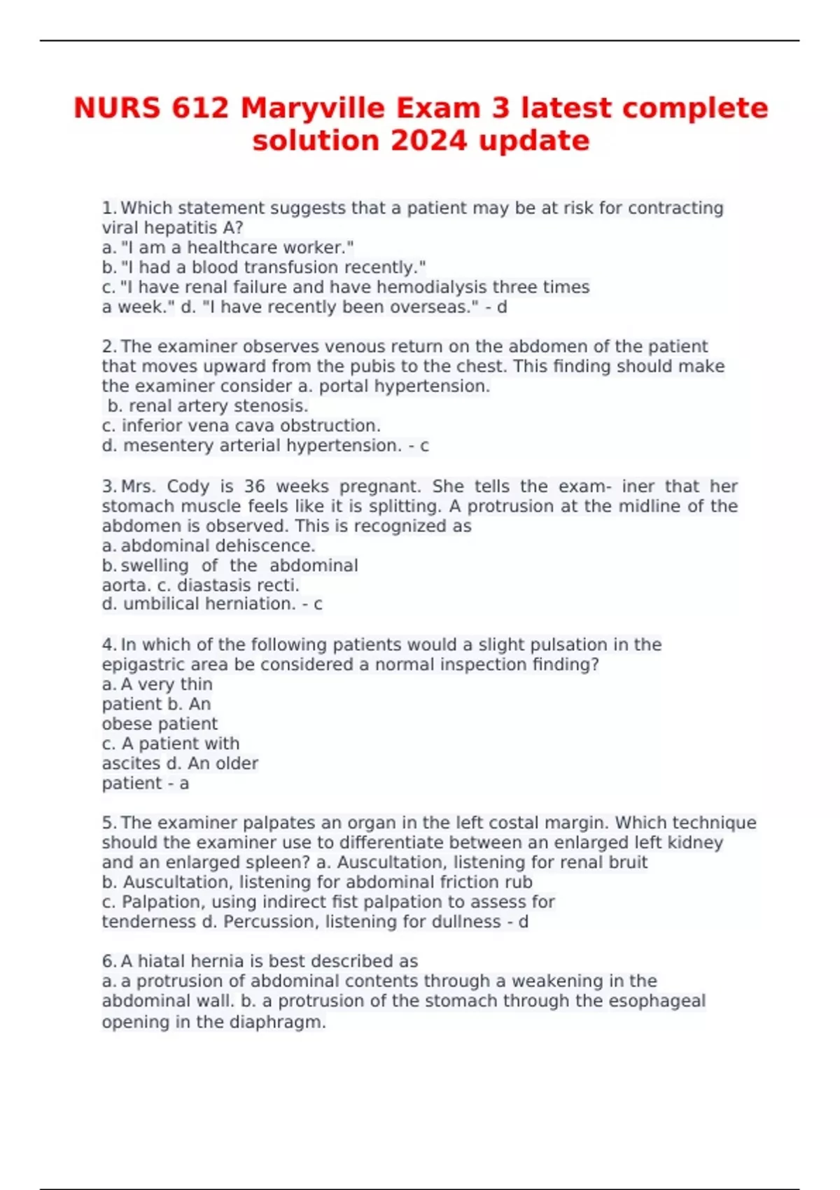 NURS 612 Maryville Exam 3 latest complete solution 2024 update