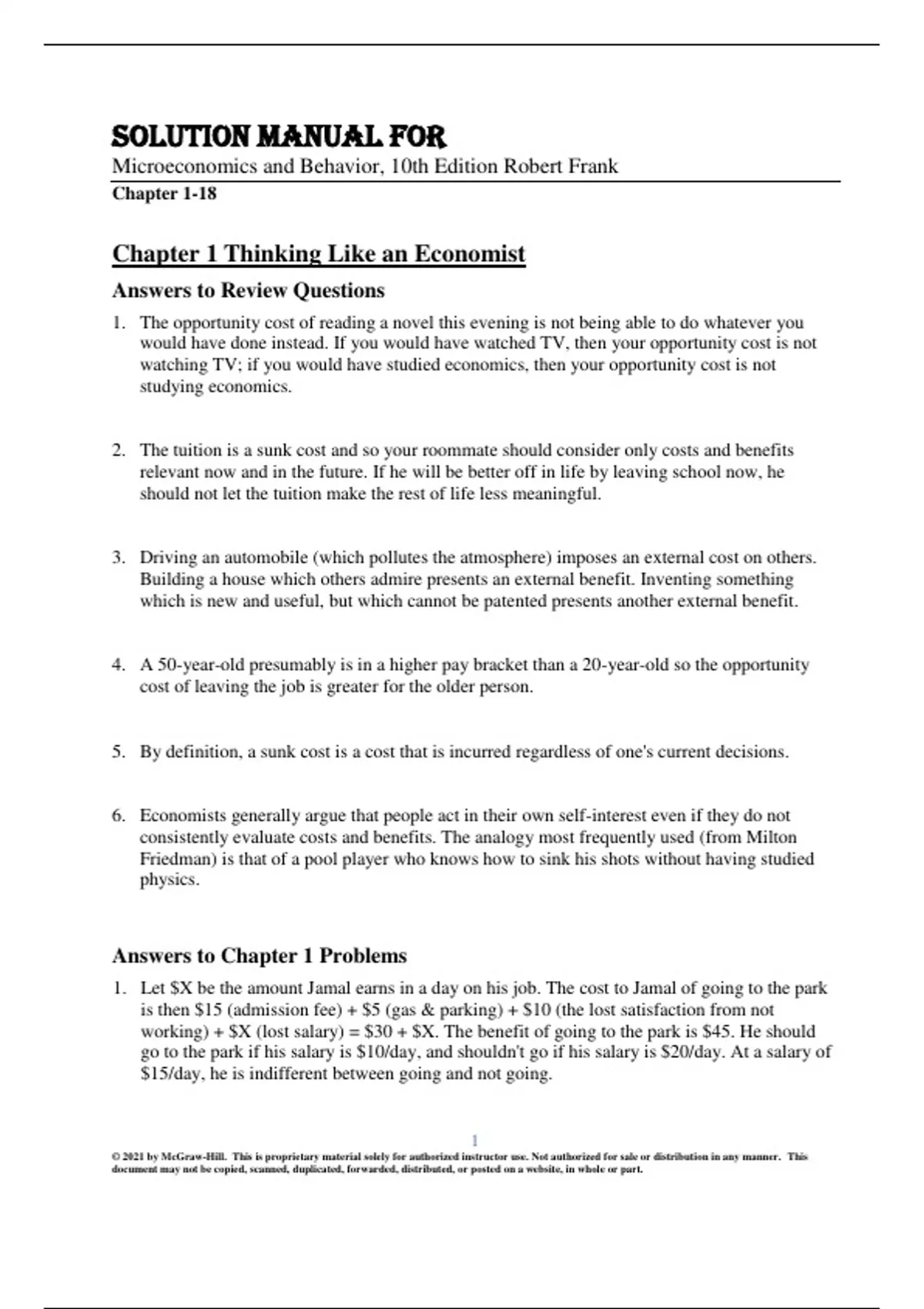 Solution Manual For Microeconomics and Behavior, 10th Edition Robert Frank Chapter(1-18)