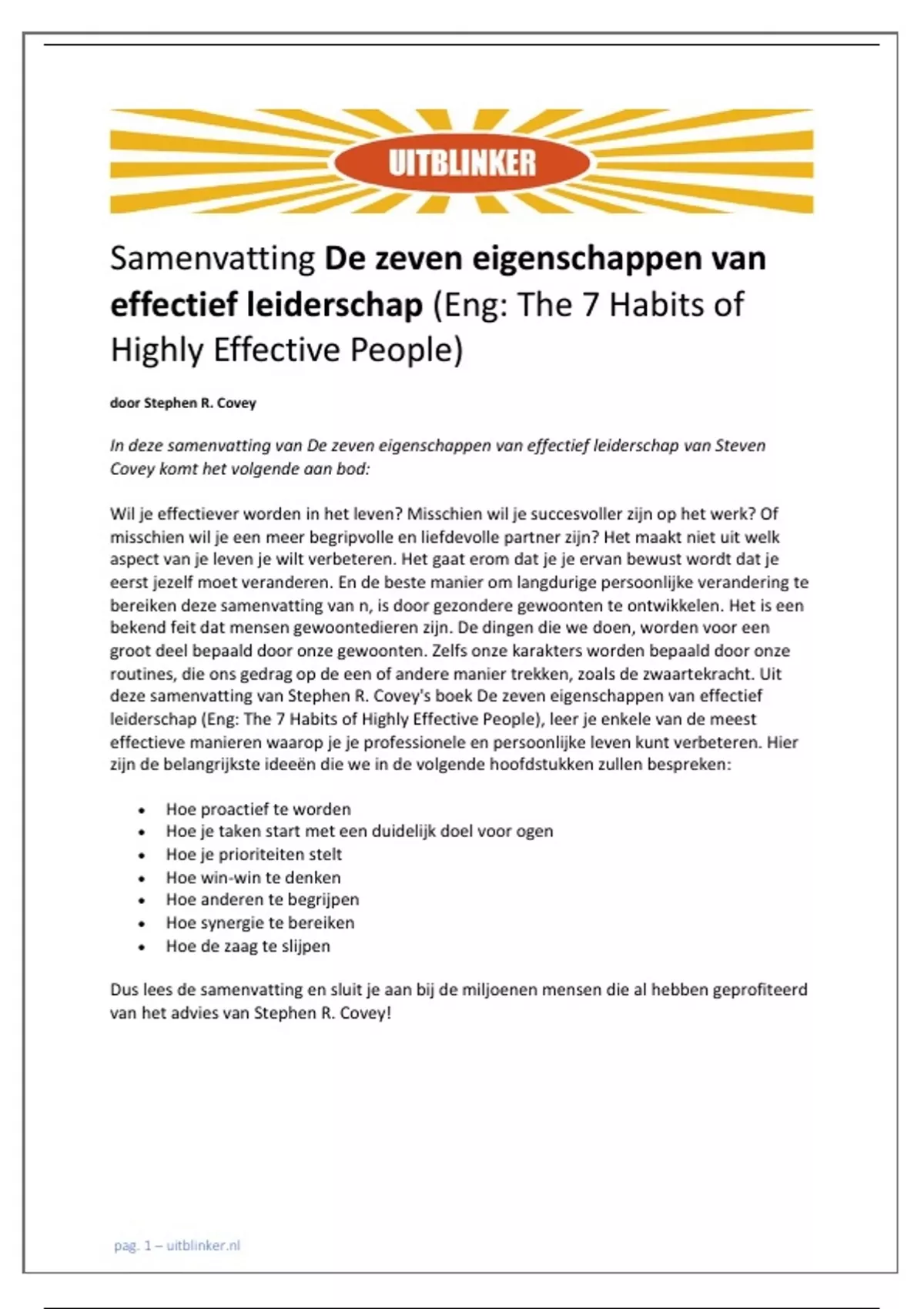 In deze samenvatting van De zeven eigenschappen van effectief leiderschap van Steven