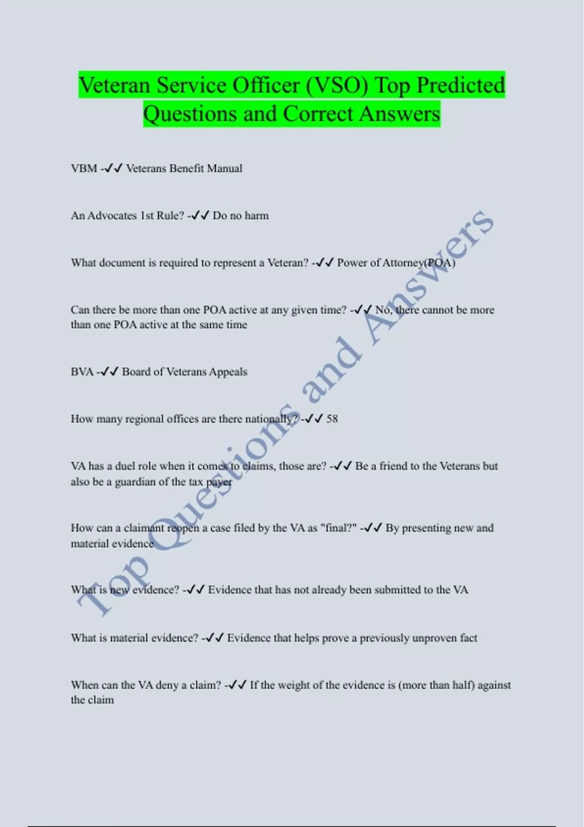 Veteran Service Officer (VSO) Top Predicted Questions and Correct Answers