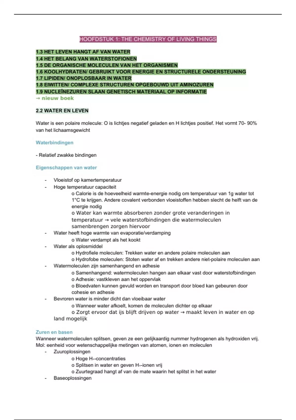 HOOFDSTUK 1: THE CHEMISTRY OF LIVING THINGS