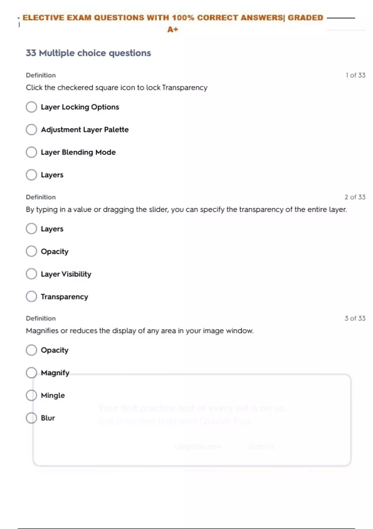 FREE ELECTIVE EXAM TEST QUESTIONS WITH 100% CORRECT ANSWERS| GRADED A+