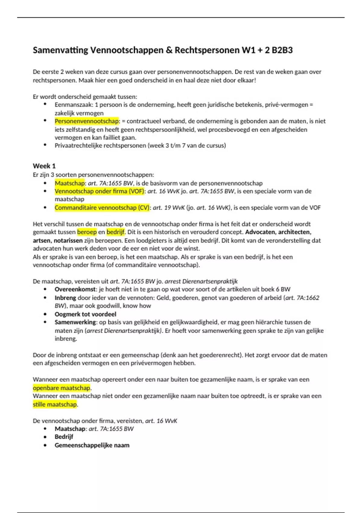 Privaatrechtelijke rechtspersonen (week 3 t/m 7 van de cursus)