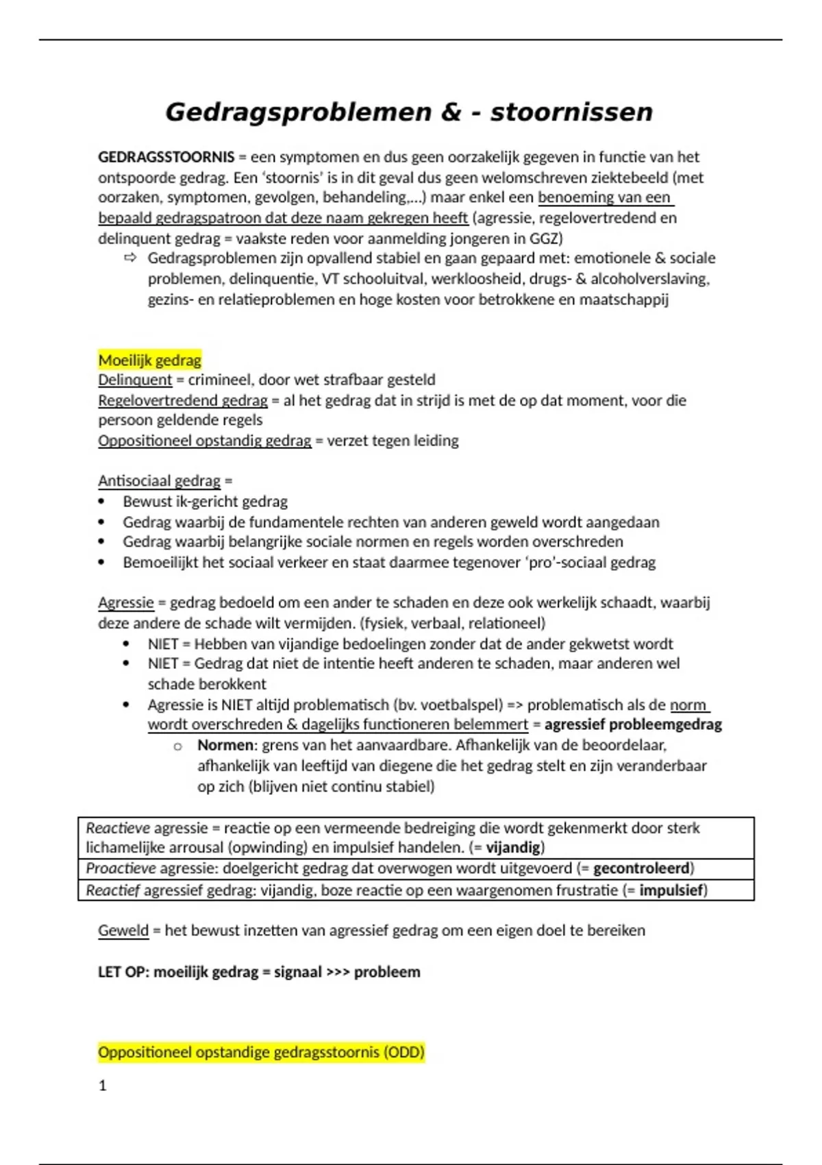 samenvatting deel gedragsproblemen PIET vanuit powerpoint, eigen notities en samenvattende cursus tekst.
