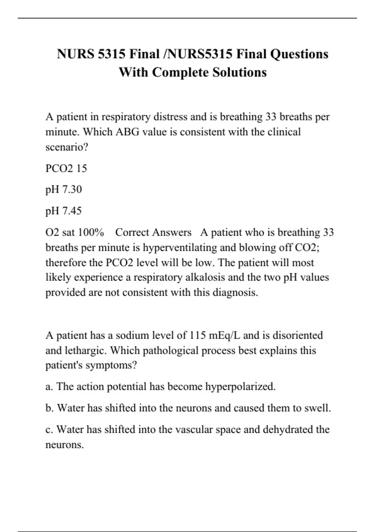NURS 5315 Final /NURS5315 Final Questions With Complete Solutions