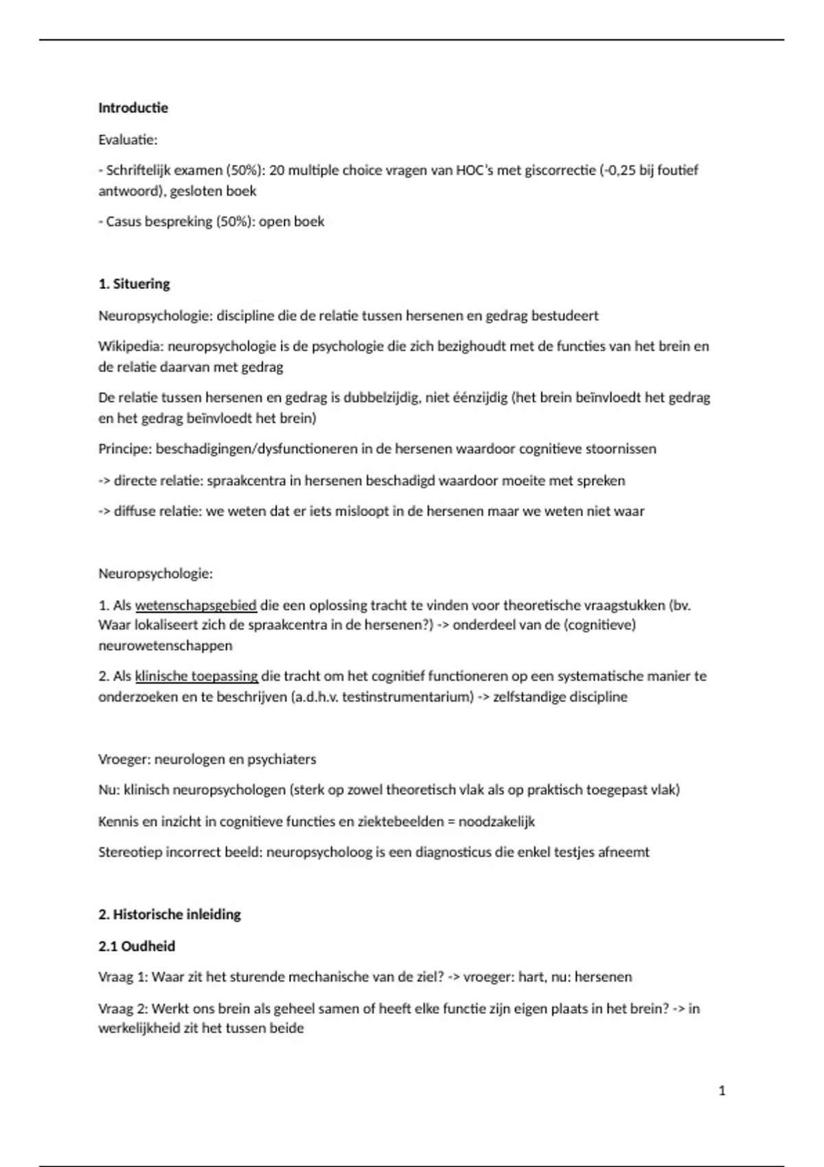 Wikipedia: neuropsychologie is de psychologie die zich bezighoudt met de functies van het brein en