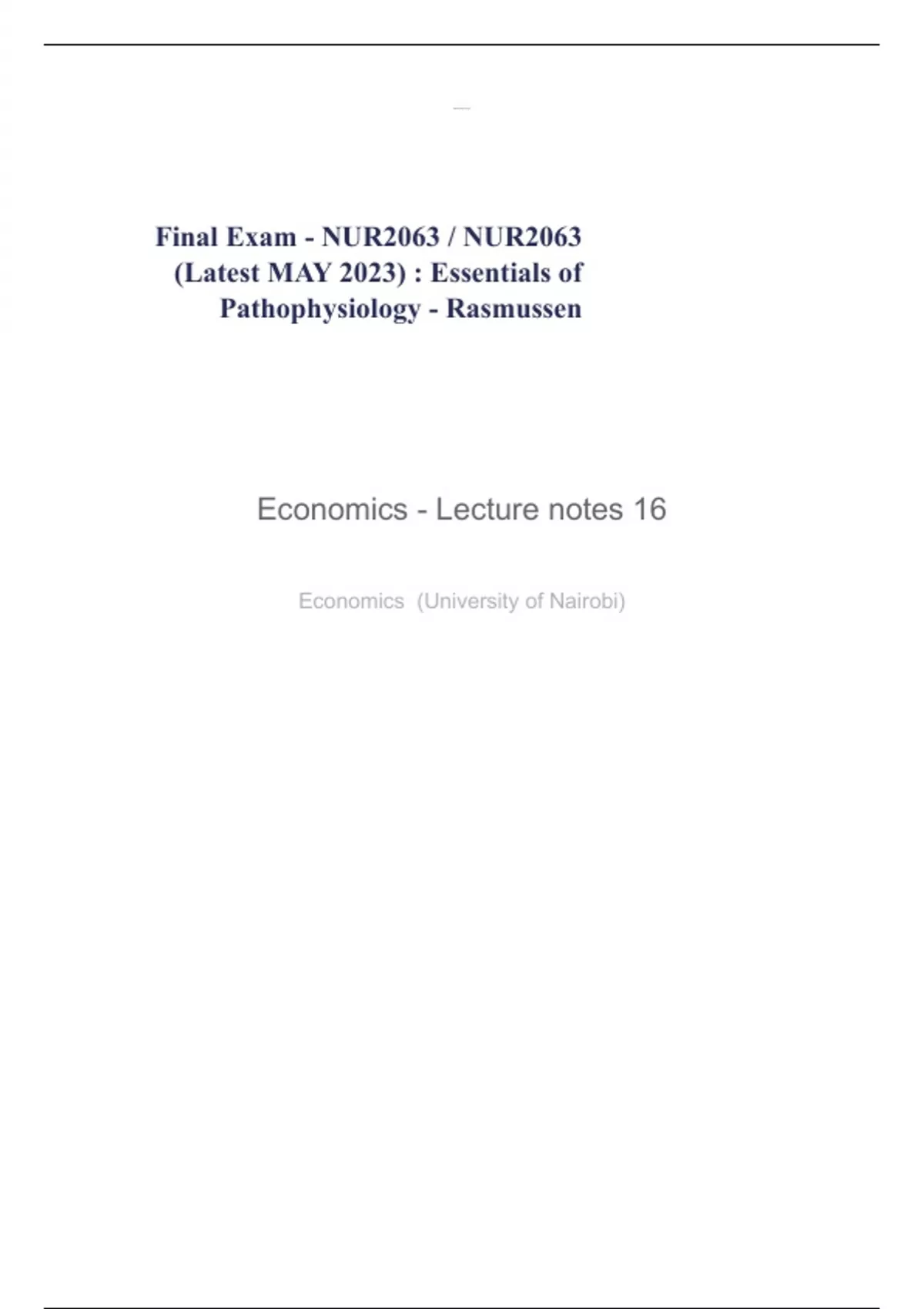 Final Exam - NUR2063 / NUR2063 (Latest MAY 2023) : Essentials of Pathophysiology - Rasmussen