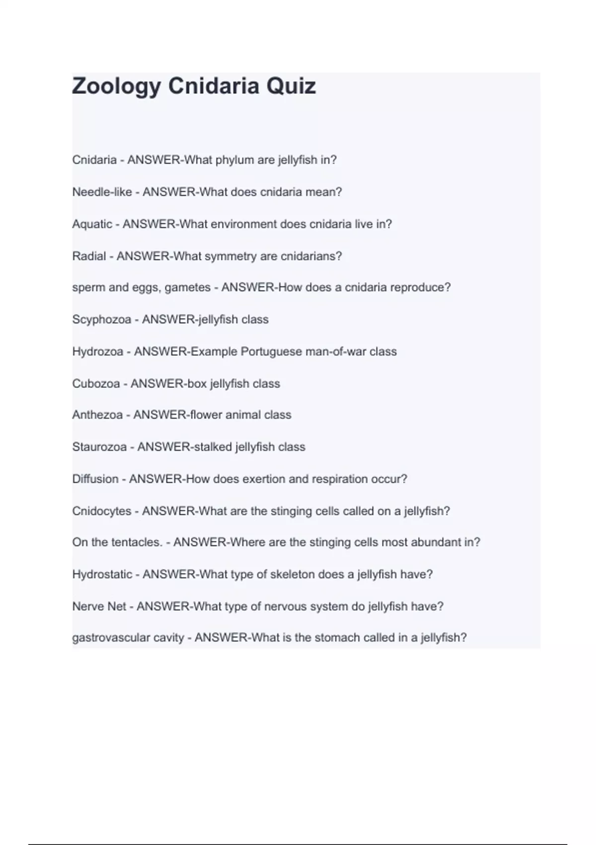 Zoology Cnidaria uiz