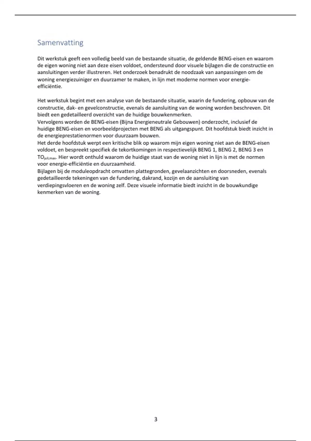 Dit werkstuk geeft een volledig beeld van de bestaande situatie, de geldende BENG-eisen en waarom