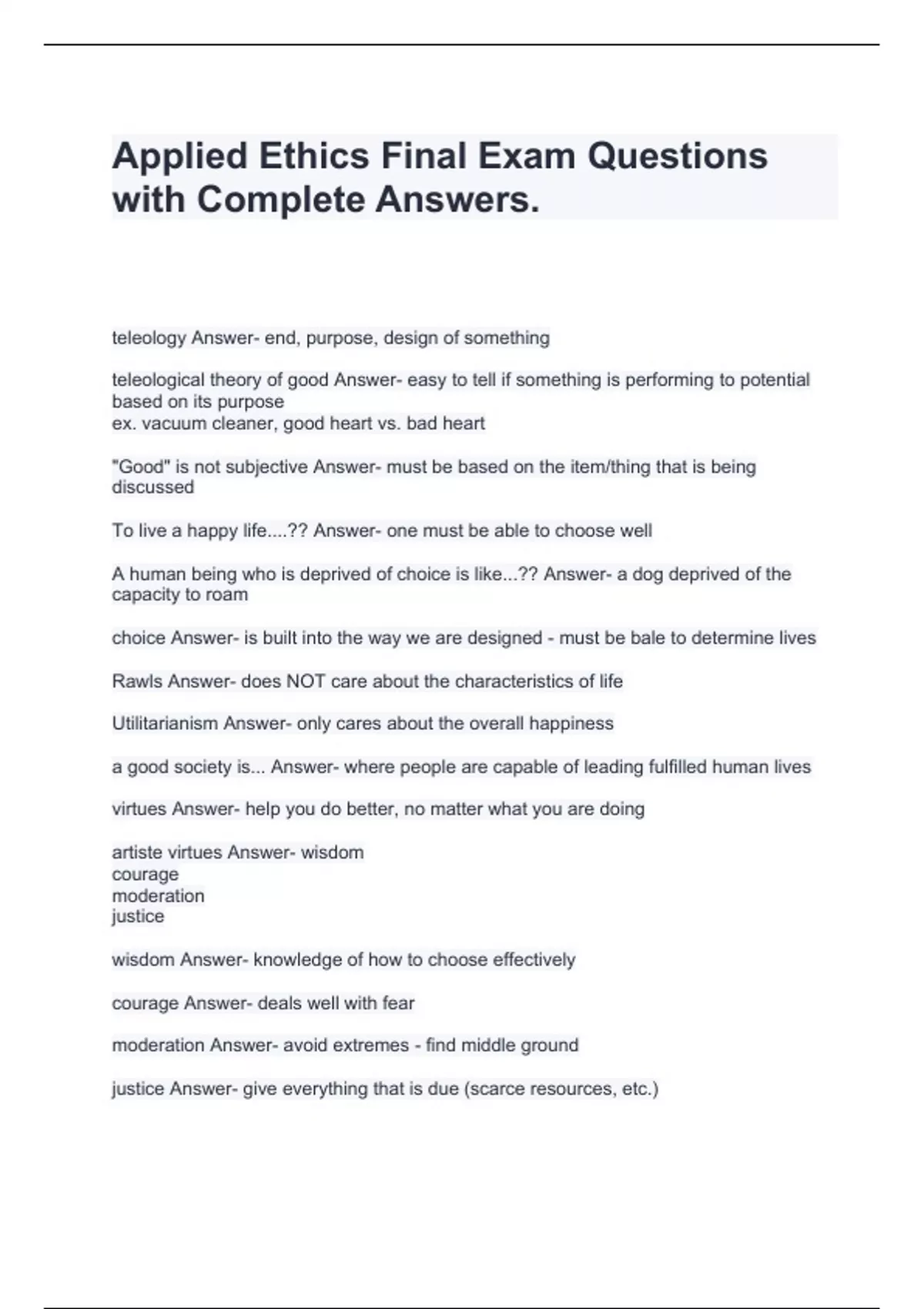 applied ethics final exam questions with complete