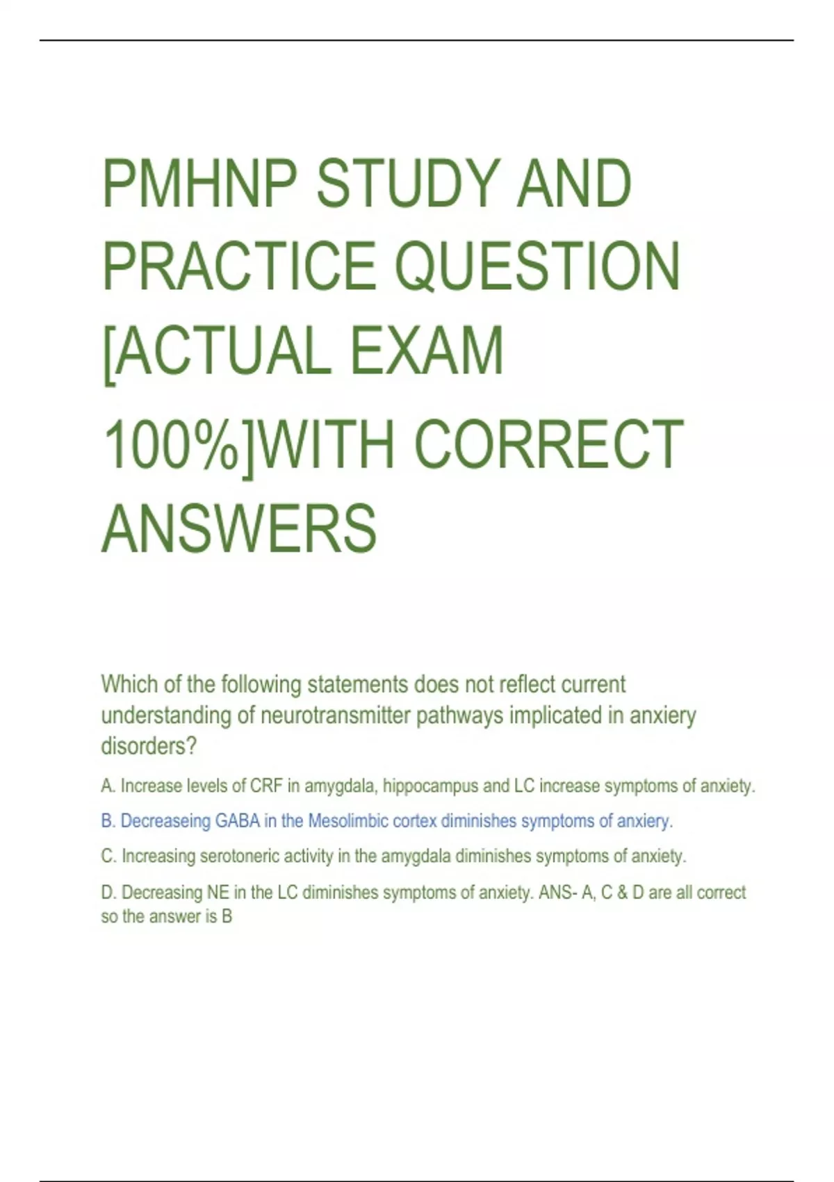 A. Increase levels of CRF in amygdala, hippocampus and LC increase symptoms of anxiety.