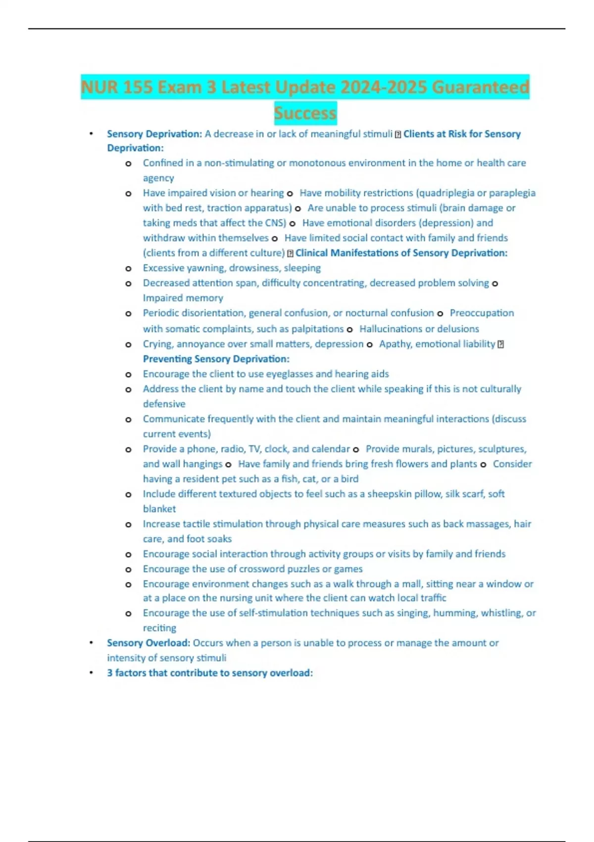 NUR 155 Exam 3 Latest Update Guaranteed Success