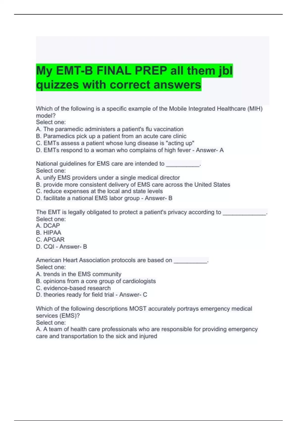 My EMT-B FINAL PREP all them jbl quizzes with correct answers