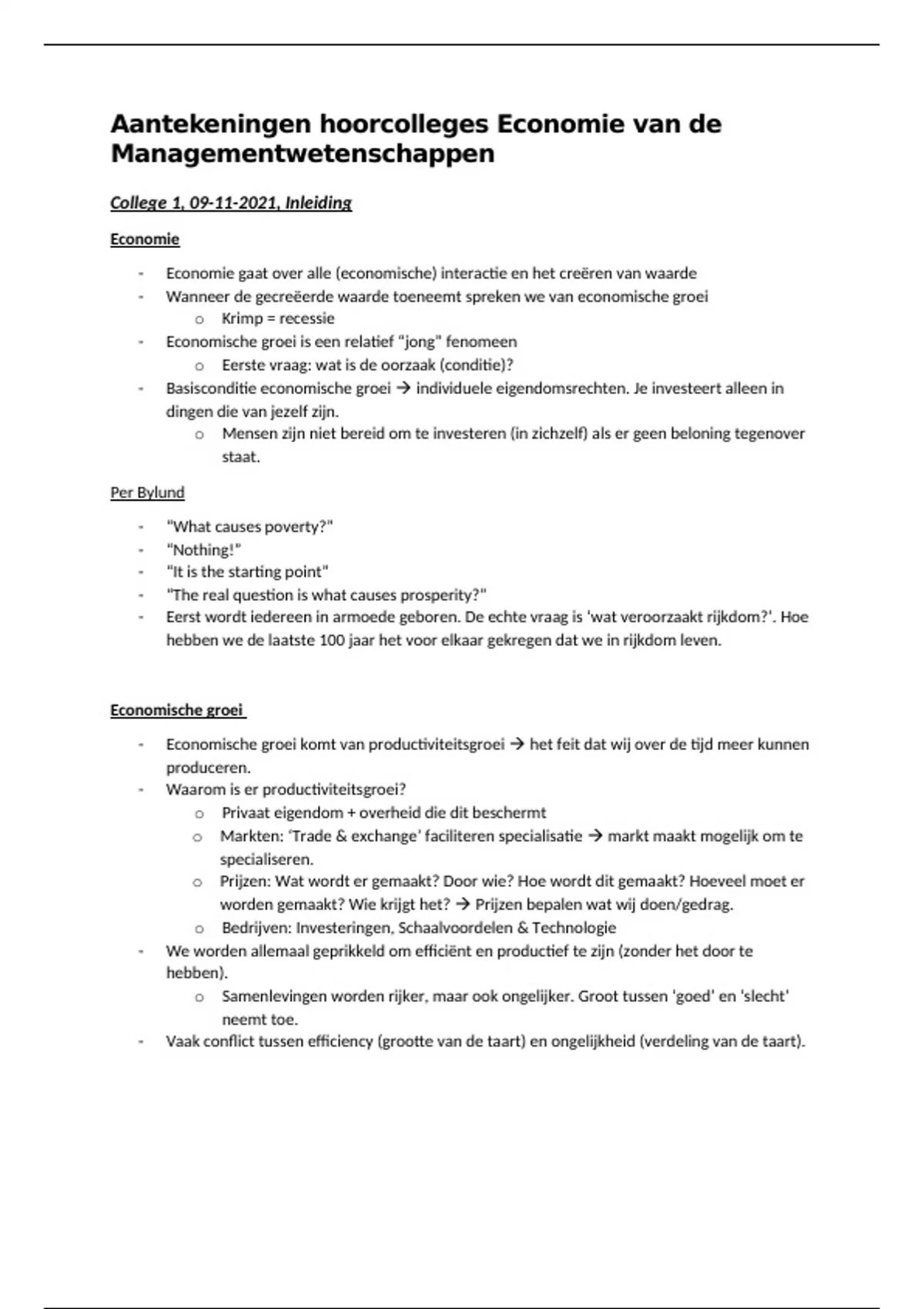 Alle hoorcolleges van het van Economie van de Managementwetenschappen (EVDM) Inclusief voorbeelden en plaatjes Radboud Universiteit