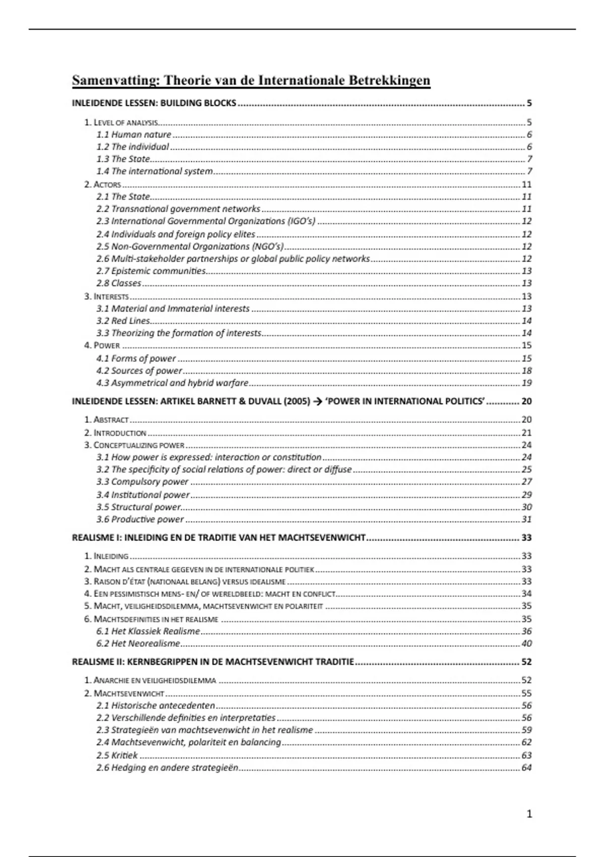 Samenvatting: Theorie van de Internationale Betrekkingen