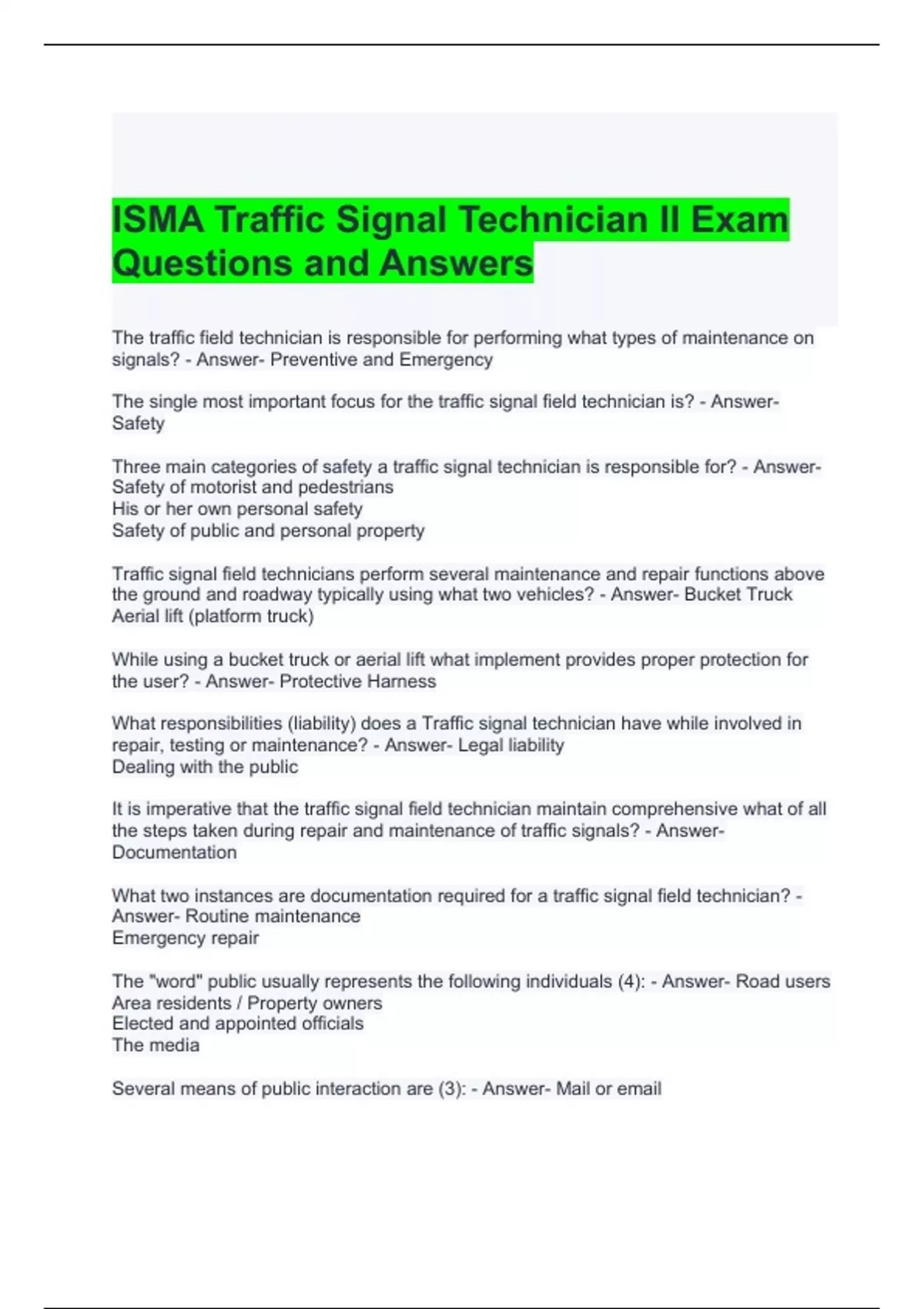 ISMA Traffic Signal Technician II Exam Questions and Answers