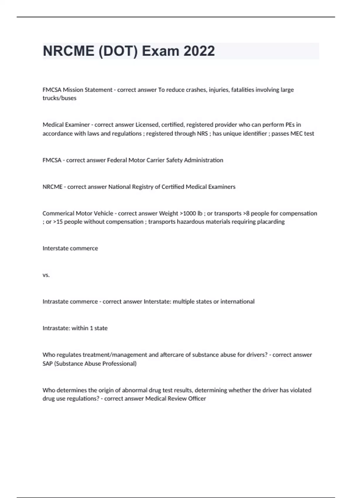 NRCME (DOT) Exam 2022 Updated 2024 Question And Answer.